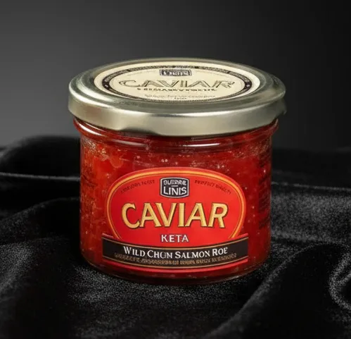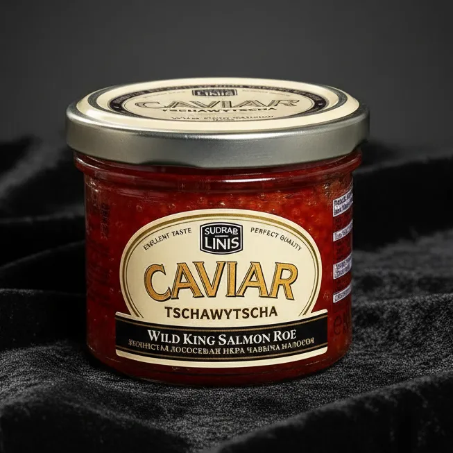 Premium roter Lachsrogen mit lebendiger Farbe und delikatem Geschmack.